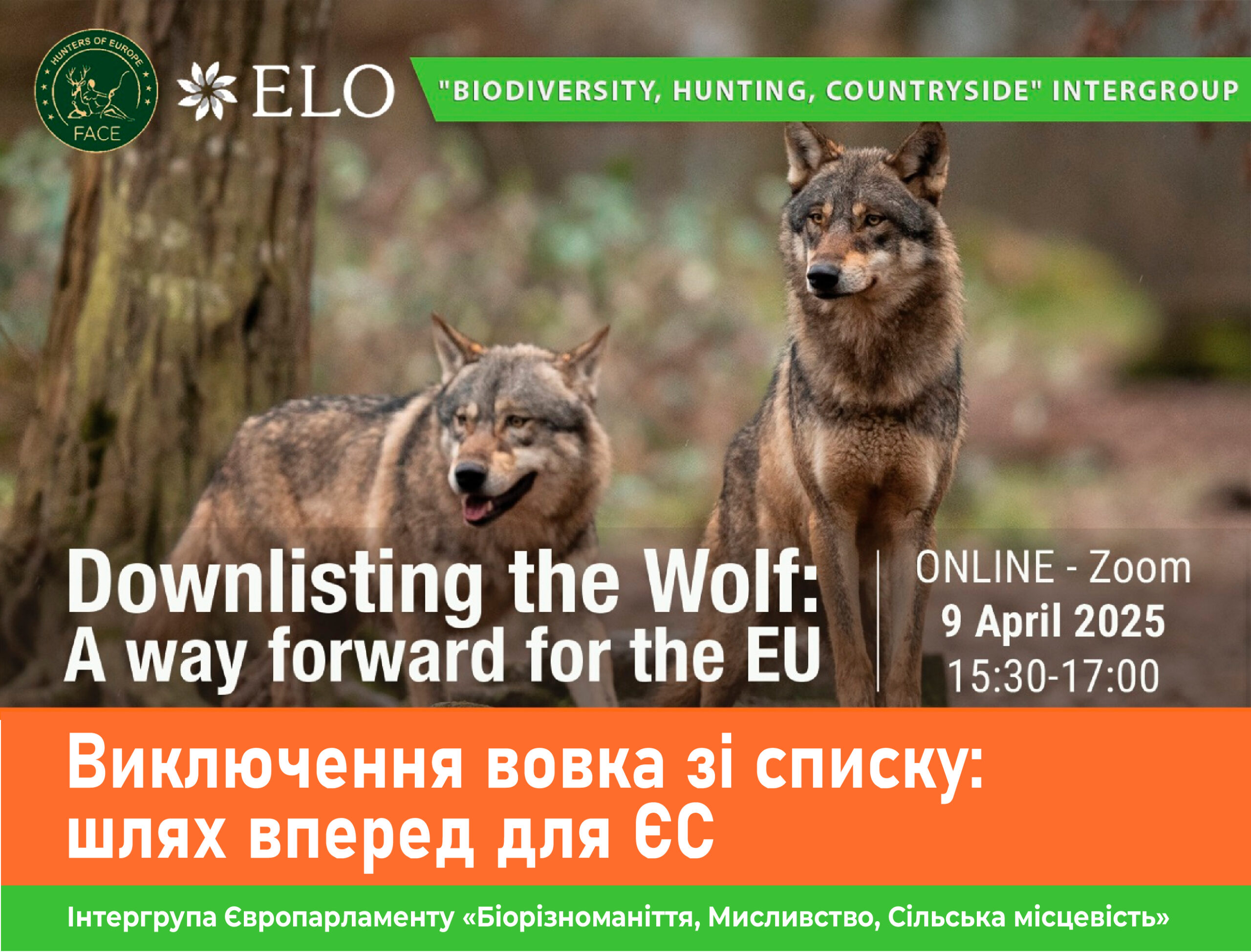 Детальніше9 квітня 2025 року Інтергрупа Європейського парламенту «Біорізноманіття, мисливство, сільська місцевість» провела онлайн-захід: «Виключення вовка: шлях вперед для ЄС». Він пройшов у співпраці з Федерацією мисливських та природоохоронних асоціацій Європи (FACE – European Federation for Hunting and Conservation), членом якої є і Всеукраїнська асоціація мисливців та користувачів мисливських угідь (ВАМКМУ), а також Європейською організацією землевласників …